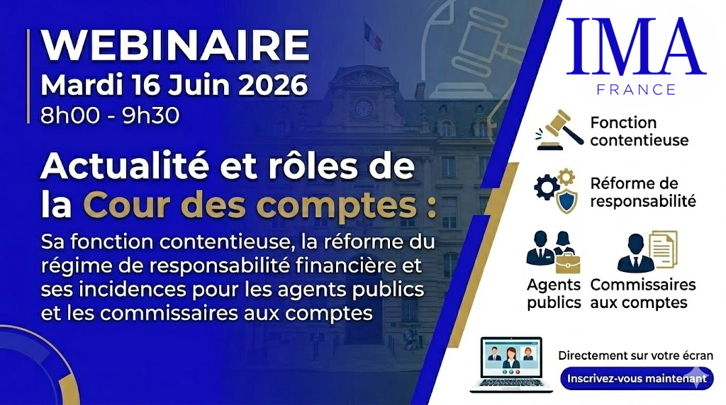 Les webinaires /conférences de l’IMA FRANCE sont toujours très instructives et riches, que ce soit sur les sujets comptables ou de durabilité. Parfaitement organisées et minutées entre 8h et 9h30, avec l’envoi du support et de l’enregistrement pour une réécoute, c’est vraiment un très bon moyen de se tenir au courant des dernières actualités comptables, d’audit et de durabilité.